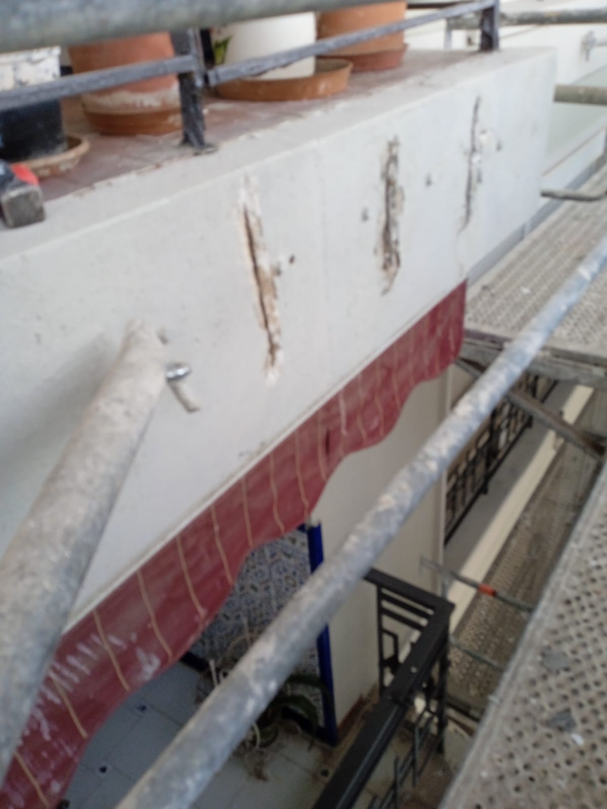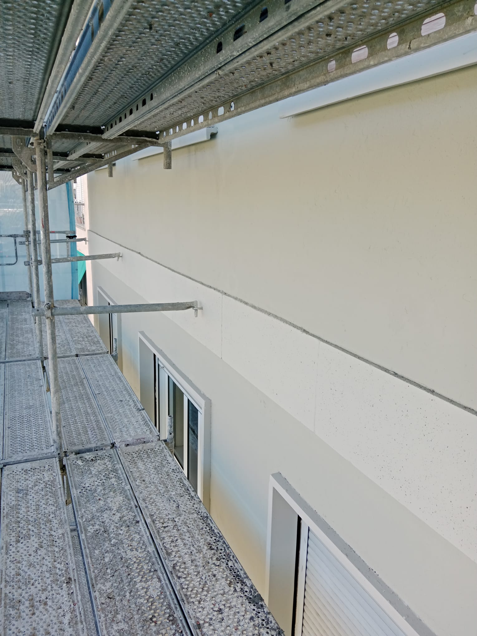 La particularidad de esta fachada está en el revestimiento de piedra que tiene en algunas zonas del edificio, principalmente, en los frentes de los balcones y en un lado de la fachada, a modo decorativo. Estas piedras están sujetas mediante unos tornillos que las están deteriorando y partiendo, suponiendo riesgo de desprendimiento. Nuestra labor aquí consistirá en la rehabilitación y pintura de fachada y reparación y fijación de estas piedras con materiales adecuados.